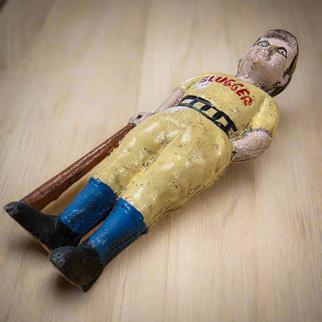 Bring a slice of history to your shelf with this high-quality 'Baseball Slugger Cast Iron Coin Bank With Painted Antique Finish'. Featuring a hand-applied antique finish and substantial tactile weight, this piece is more than just a collectible—it's a conversation starter. Whether used as a functional savings bank, a heavy-duty paperweight, or a standalone decor piece, it carries the rugged charm and 'built-to-last' philosophy of early 20th-century Americana.