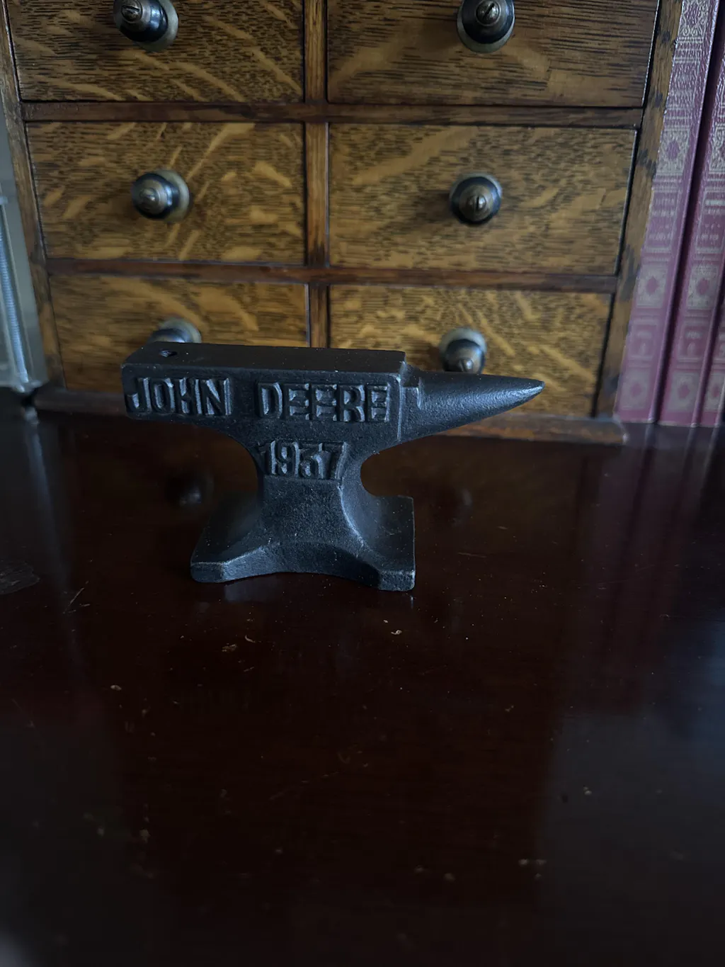 John Deere 1937 Cast Iron Anvil Paperweight Cast Iron With Raised Lettering & Antique Finish (4.5" x 2.75")
